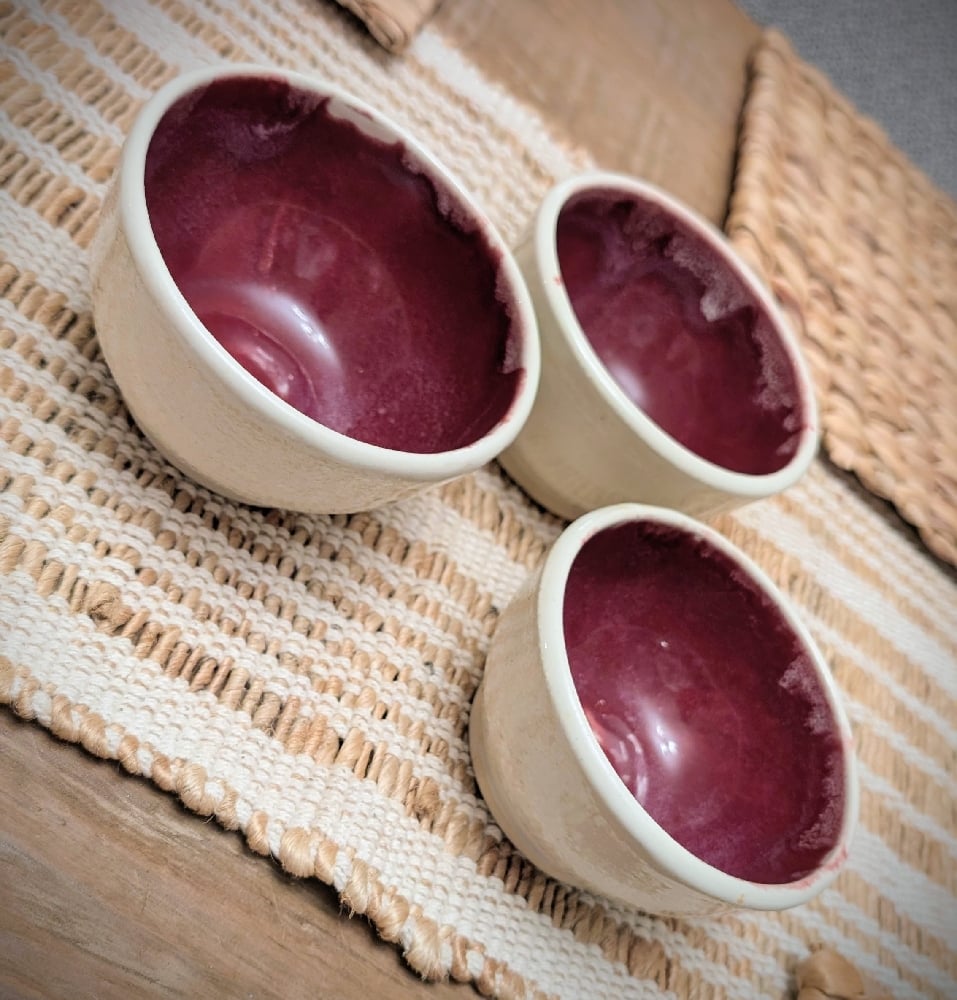 Each bowl holds a practical 250ml, making them the ideal size for your morning yogurt or a serving of evening ice cream. From small snacks to side dishes, these deep-plum glazed vessels are the perfectly palm sized.
