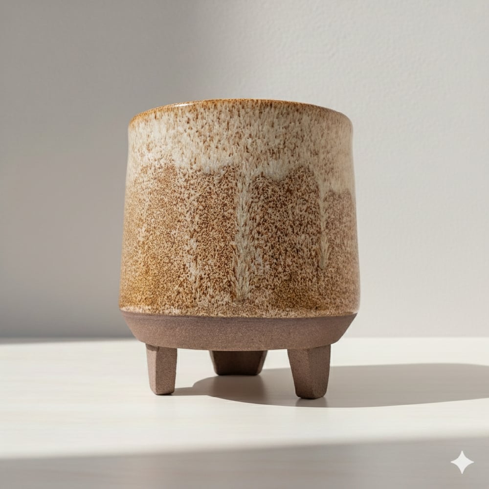 Golden Hour: Hand-Footed Ceramic Planter in Speckled Amber