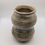 Elevate your decor with this striking, hand-thrown ceramic vase featuring a unique hourglass profile that is both elegant and modern.