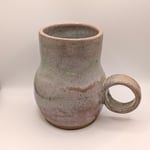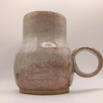 This 14oz stoneware mug stands out with its elegant, cinched silhouette and a modern circular ring handle that is as comfortable as it is eye-catching. The glaze is a soft, multi-tonal wash of seafoam green that melts into a warm peachy-tan, reminiscent of a quiet morning at the coast.