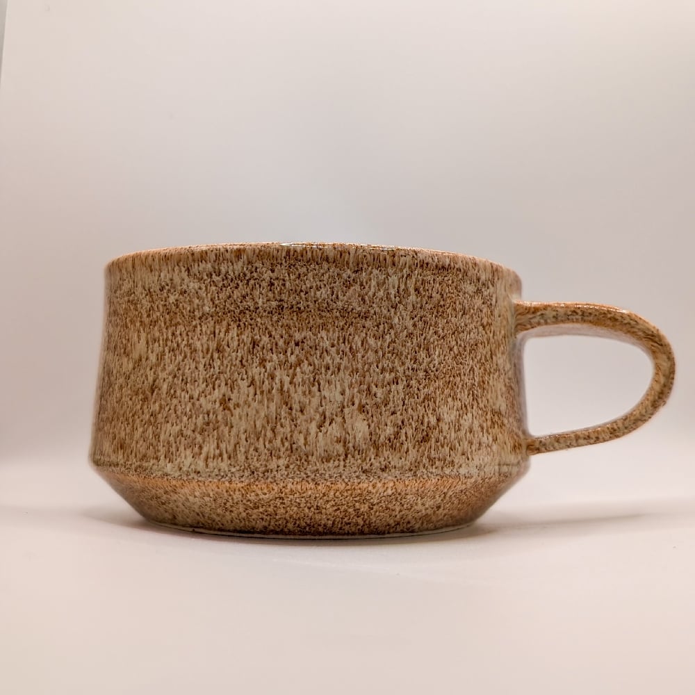 The earthy, heavy speckle glaze creates a rustic, organic look that complements any warm meal.